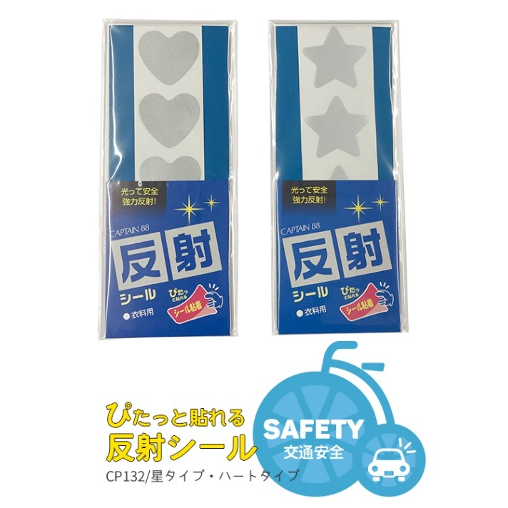簡単接着 反射シール シールタイプ/星型・ハート型 CP132 各6個入り 交通安全 リフレクターキャプテン88