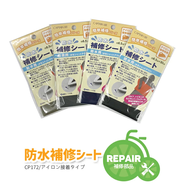 レインカバーレインウェア補修 目止め 防水補修シート アイロン強力接着 CP172 キャプテン88
