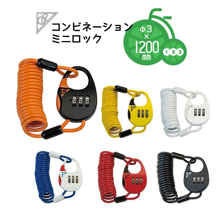 LABOCLE ラボクル ダイヤル式 自転車用ワイヤーロック コイルケーブル カラビナロック Φ3×1200mm L-KLK02-BLACK